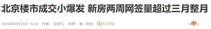来自不同渠道的消息也分别显示,多个城市的成交正在回暖,以北京为例,过去两周的新房网签量超过了整个3月份。