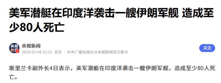 谁能想到,这艘军舰刚离开印度洋准备返航,就在斯里兰卡附近海域被美军核潜艇一发鱼雷给击沉了,足足八十多条人命就这么没了。